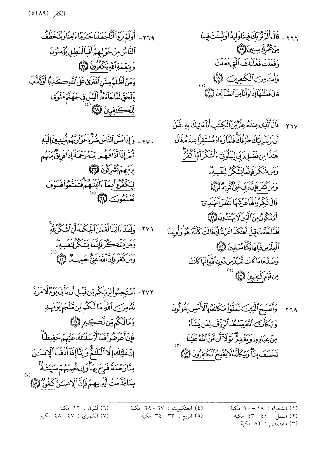 267- قالَ الَّذِي عِنْدَهُ عِلْمٌ مِنَ الْكِتابِ أَنَا آتِيكَ بِهِ قَبْلَ أَنْ يَرْتَدَّ إِلَيْكَ طَرْفُكَ فَلَمَّا رَآهُ مُسْتَقِرًّا عِنْدَهُ قالَ هذا مِنْ فَضْلِ رَبِّي لِيَبْلُوَنِي أَأَشْكُرُ أَمْ أَكْفُرُ وَمَنْ شَكَرَ فَإِنَّما يَشْكُرُ لِنَفْسِهِ وَمَنْ كَفَرَ فَإِنَّ رَبِّي غَنِيٌّ كَرِيمٌ (40) قالَ نَكِّرُوا لَها عَرْشَها نَنْظُرْ أَتَهْتَدِي أَمْ تَكُونُ مِنَ الَّذِينَ لا يَهْتَدُونَ (41) فَلَمَّا جاءَتْ قِيلَ أَهكَذا عَرْشُكِ قالَتْ كَأَنَّهُ هُوَ وَأُوتِينَا الْعِلْمَ مِنْ قَبْلِها وَكُنَّا مُسْلِمِينَ (42) وَصَدَّها ما كانَتْ تَعْبُدُ مِنْ دُونِ اللَّهِ إِنَّها كانَتْ مِنْ قَوْمٍ كافِرِينَ (43) «2»