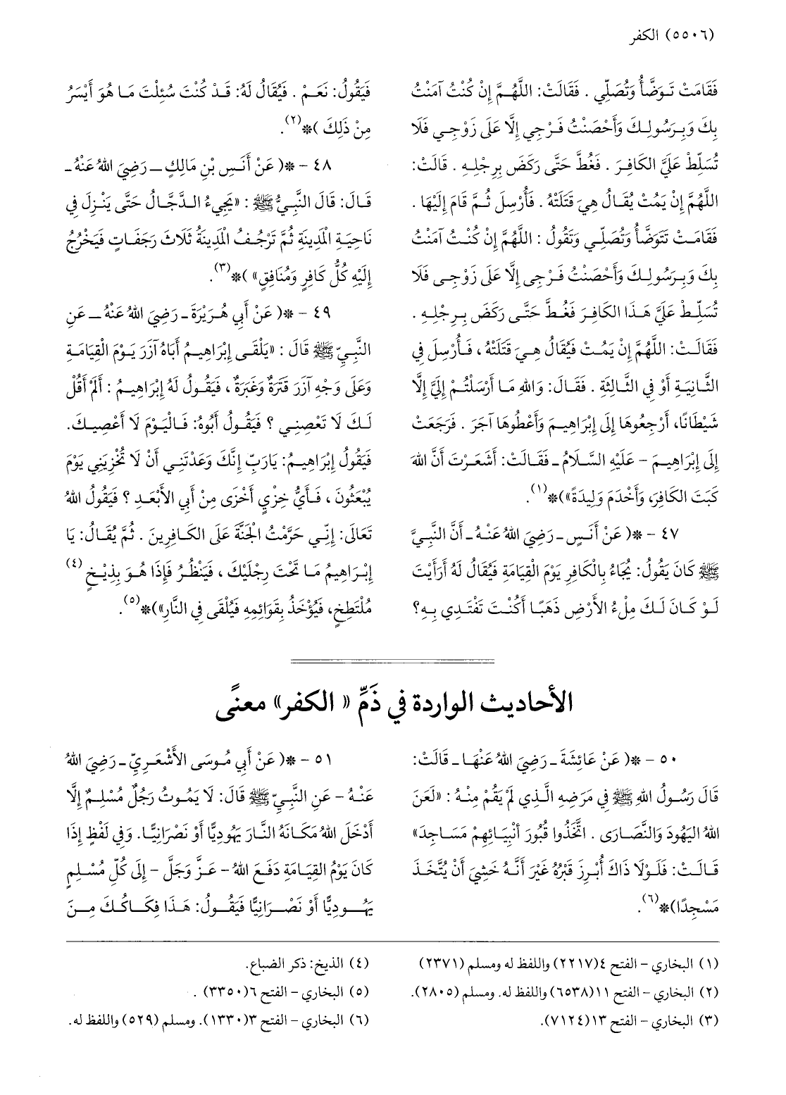 الأحاديث الواردة في ذمّ (الكفر) معنى