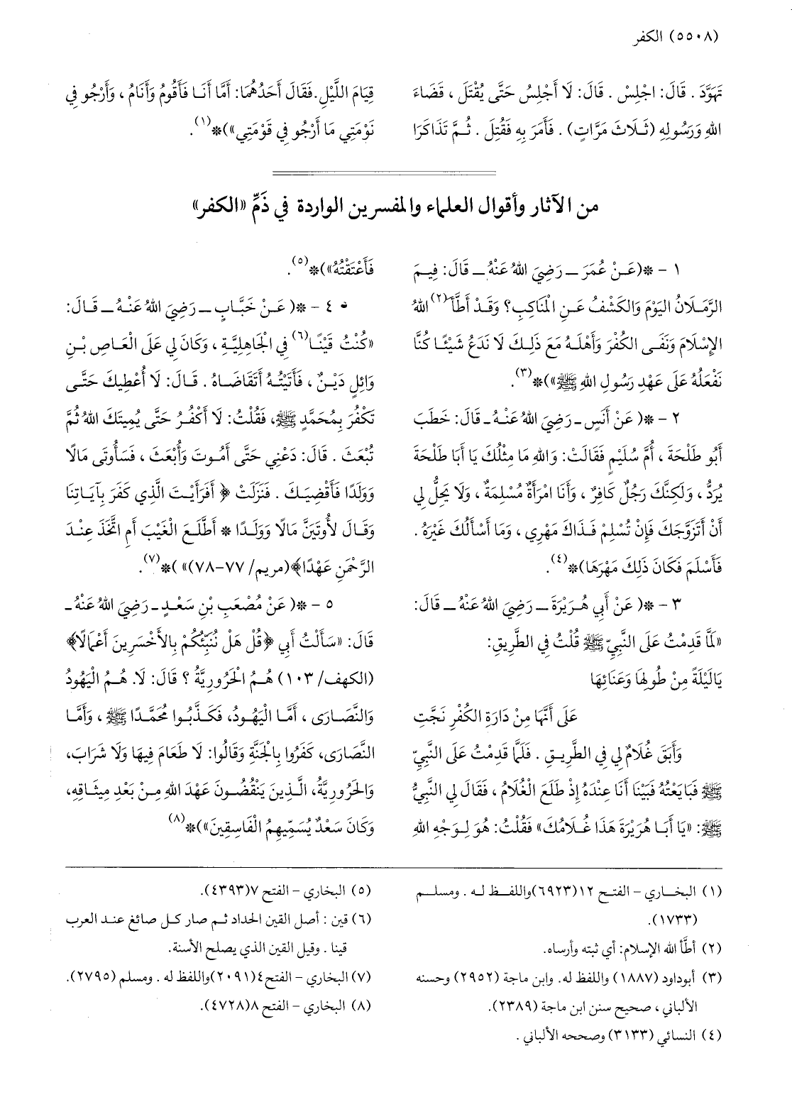 من الآثار وأقوال العلماء والمفسرين الواردة في ذمّ (الكفر)