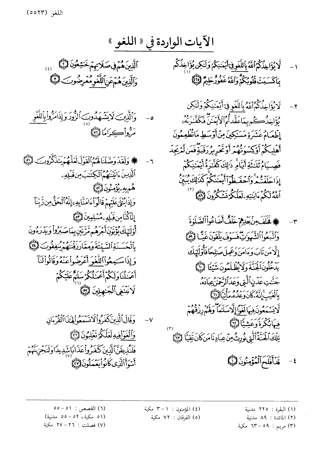 الآيات الواردة في «اللغو»