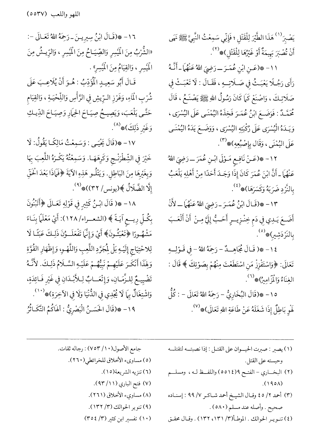 13-* (قال ابن عمر- رضي الله عنهما- لأن أضع يدي في دم خنزير أحبّ إليّ من أن ألعب بالنردشير) * «5» .