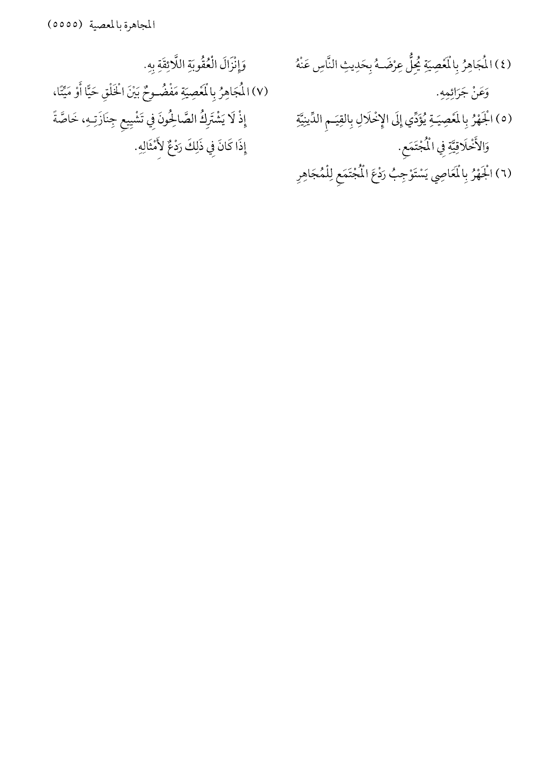 (6) الجهر بالمعاصي يستوجب ردع المجتمع للمجاهر وإنزال العقوبة اللّائقة به.