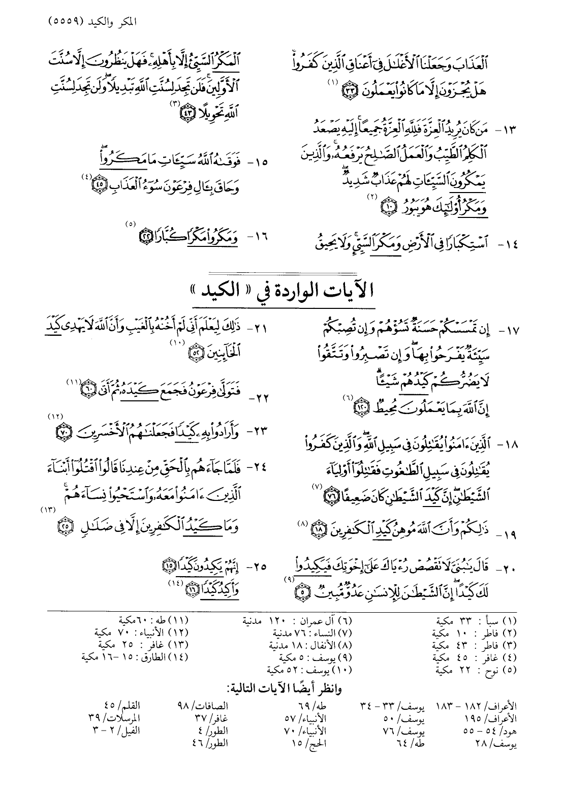 (14) الطارق: 15- 16 مكية وانظر أيضا الآيات التالية: الأعراف/ 182- 183 الأعراف/ 195 هود/ 54- 55 يوسف/ 28 يوسف/ 33- 34 يوسف/ 50 يوسف/ 76 طه/ 64 طه/ 69 الأنبياء/ 57 الأنبياء/ 70 الحج/ 15 الصافات/ 98 غافر/ 37 الطور/ 4 الطور/ 46 القلم/ 45 المرسلات/ 39 الفيل/ 2- 3