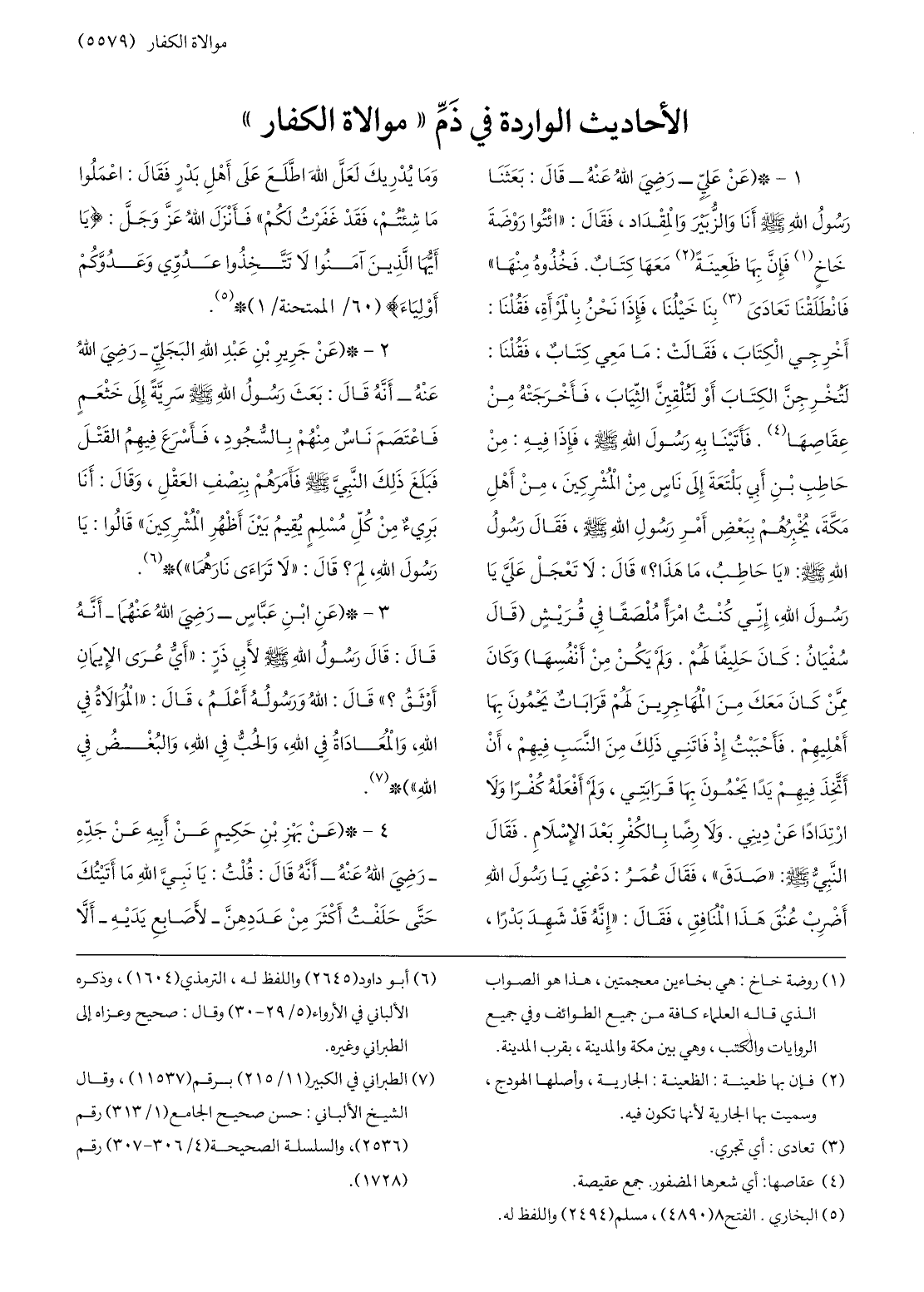 الأحاديث الواردة في ذمّ (موالاة الكفار)