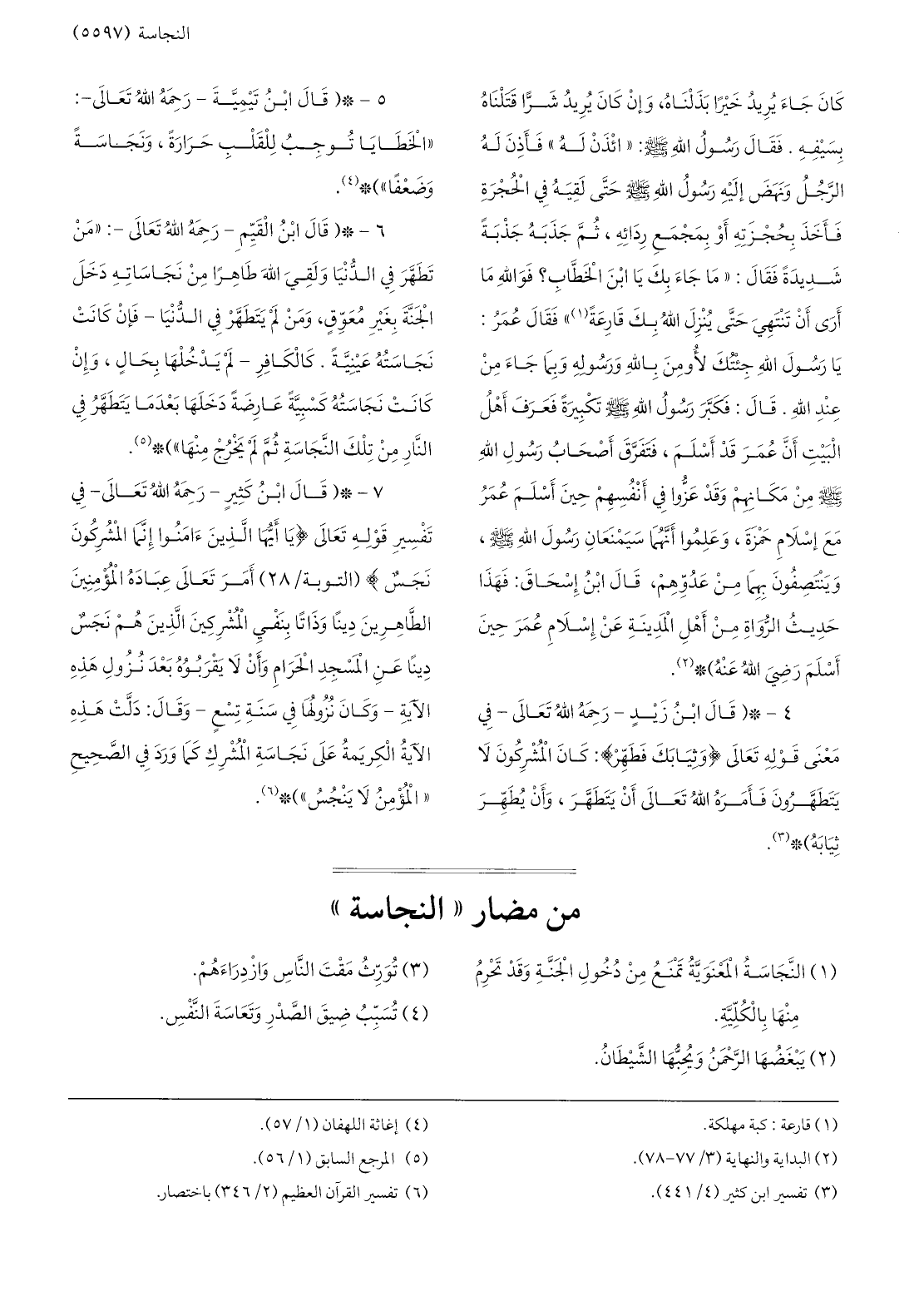 (1) النّجاسة المعنويّة تمنع من دخول الجنّة وقد تحرم منها بالكلّيّة.