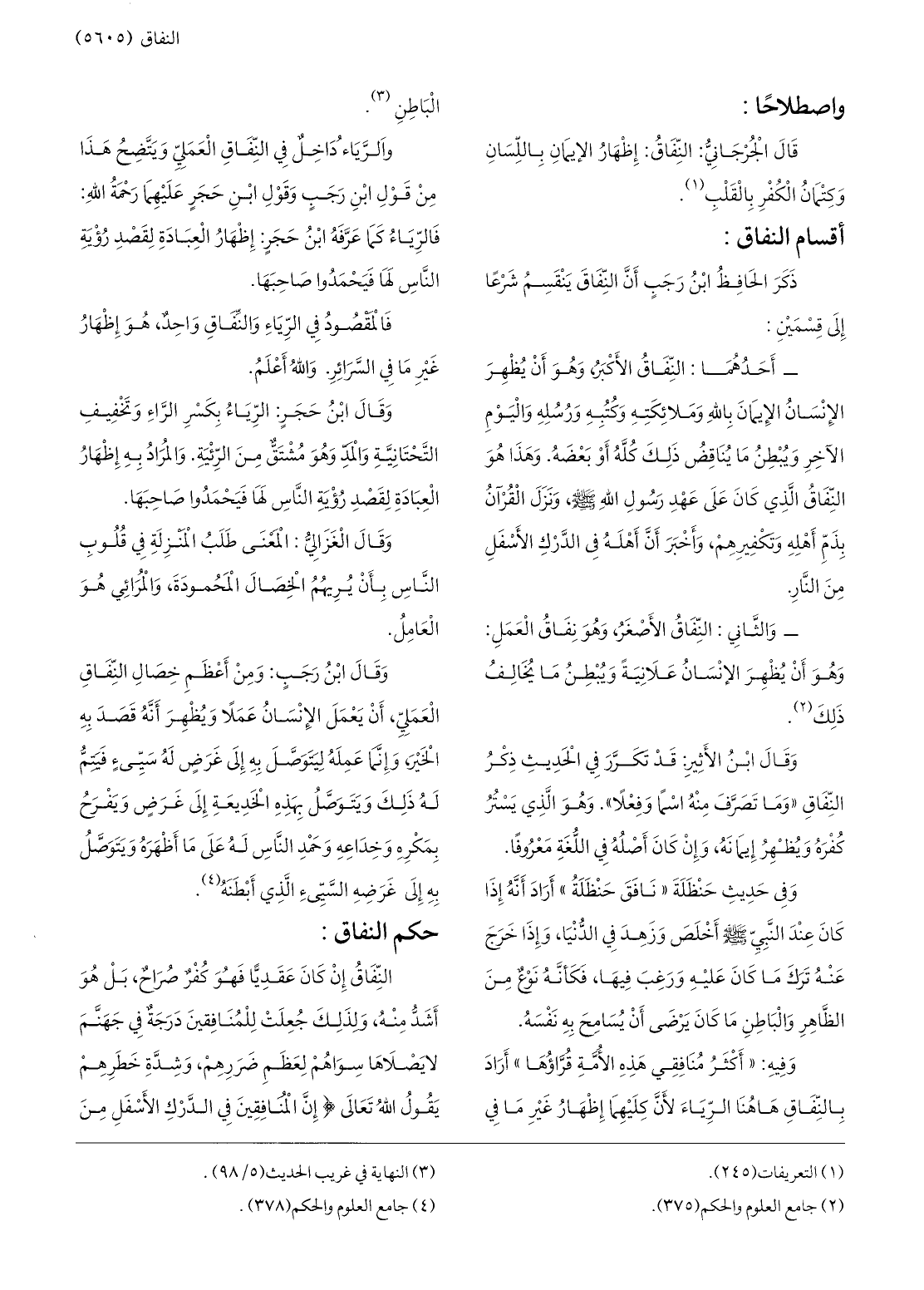 ذكر الحافظ ابن رجب أنّ النّفاق ينقسم شرعا إلى قسمين: