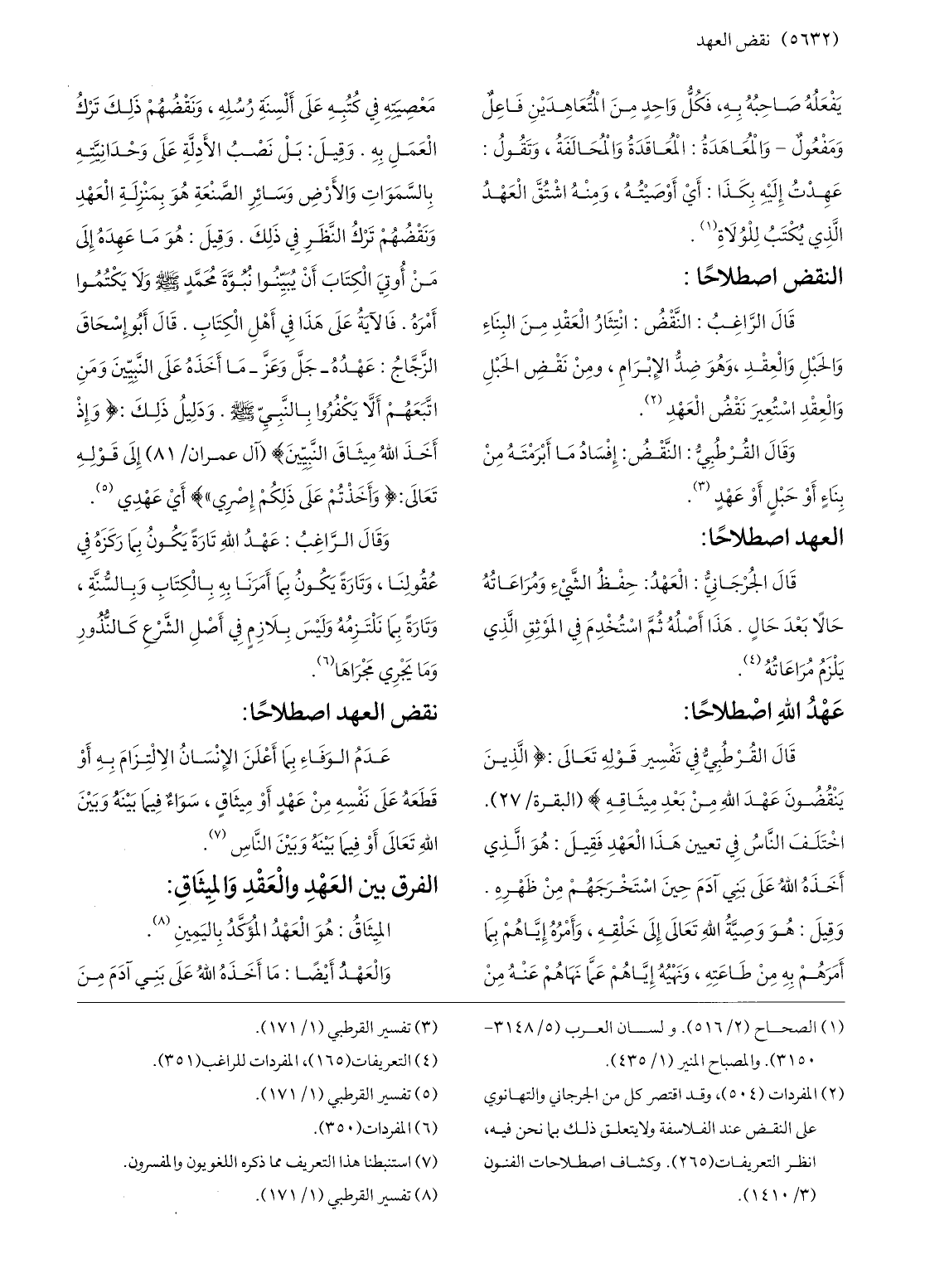 قال القرطبيّ في تفسير قوله تعالى: الَّذِينَ يَنْقُضُونَ عَهْدَ اللَّهِ مِنْ بَعْدِ مِيثاقِهِ (البقرة/ 27) .