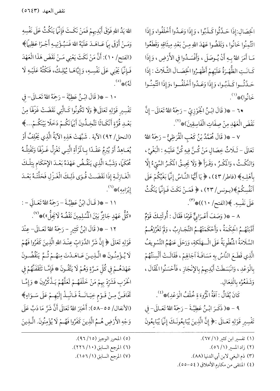6-* (قال ابن الجوزيّ- رحمه الله تعالى- إنّ نقض العهد من صفات الفاسقين) * «2» .