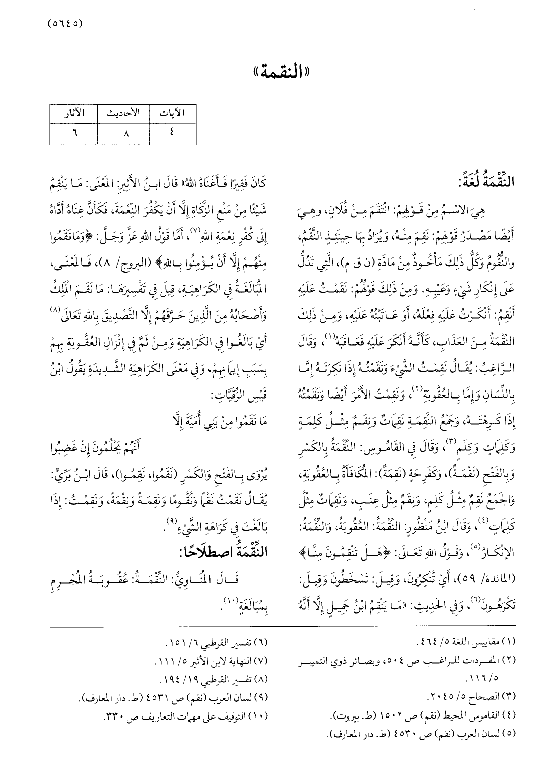 (5) لسان العرب (نقم) ص 4530 (ط. دار المعارف) .