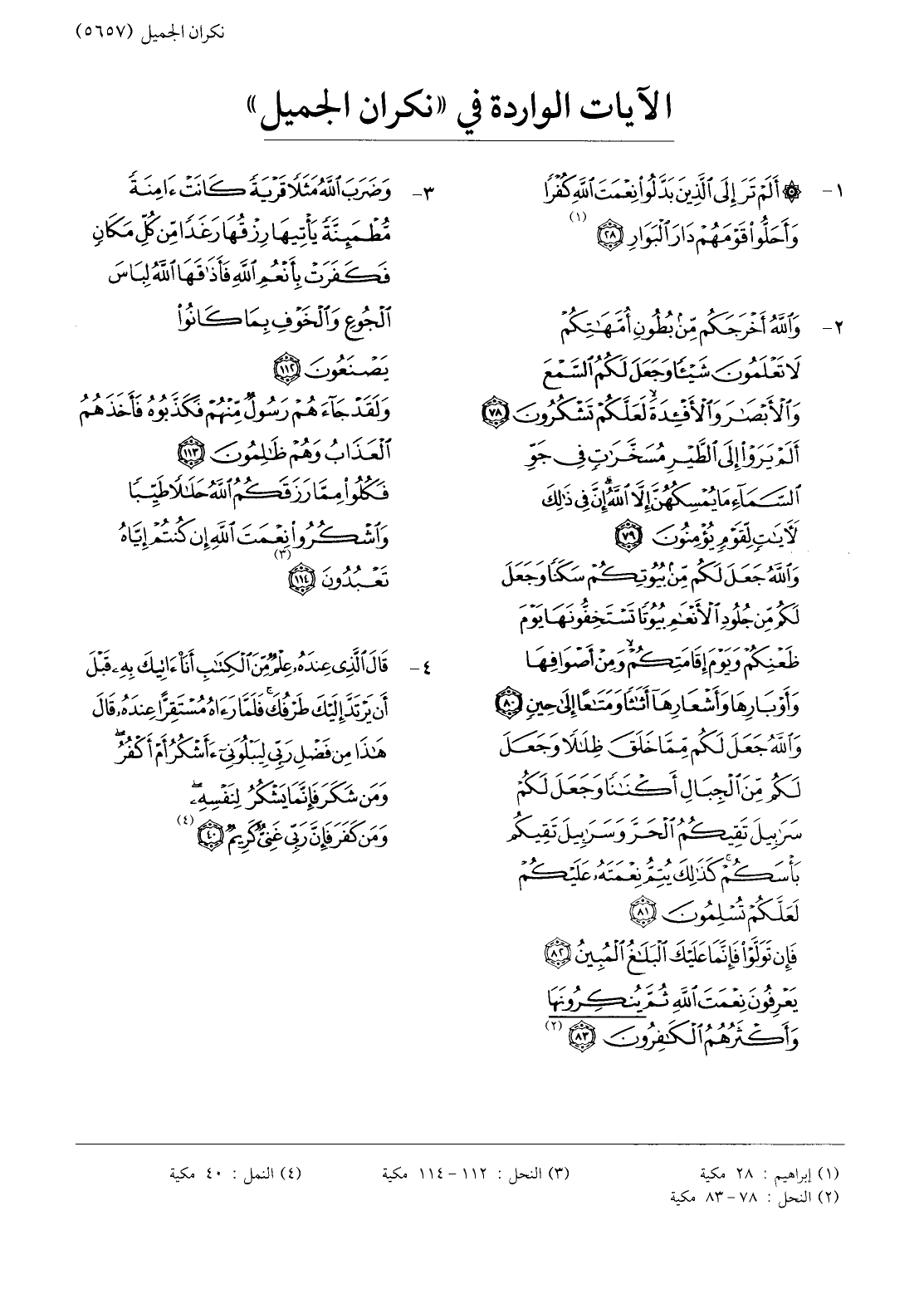 1- أَلَمْ تَرَ إِلَى الَّذِينَ بَدَّلُوا نِعْمَتَ اللَّهِ كُفْراً وَأَحَلُّوا قَوْمَهُمْ دارَ الْبَوارِ (28) «1»
