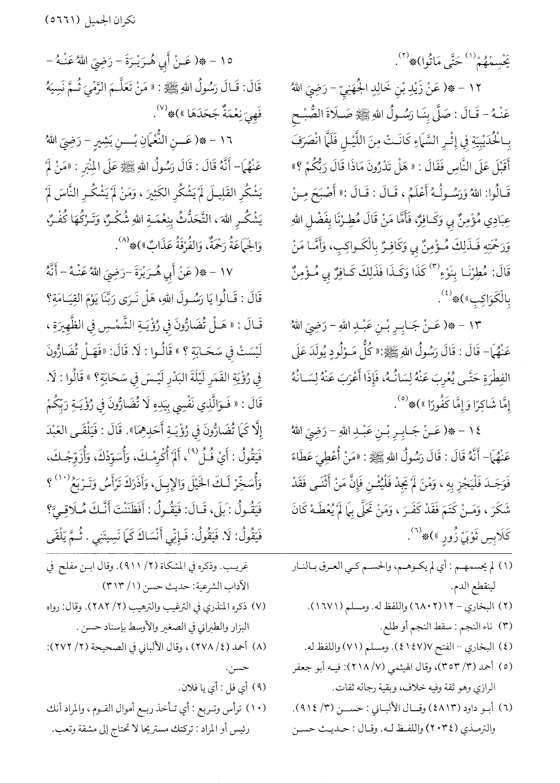 13-* (عن جابر بن عبد الله- رضي الله عنهما- قال: قال رسول الله صلى الله عليه وسلّم: «كلّ مولود يولد على الفطرة حتّى يعرب عنه لسانه، فإذا أعرب عنه لسانه إمّا شاكرا وإمّا كفورا» ) * «5» .