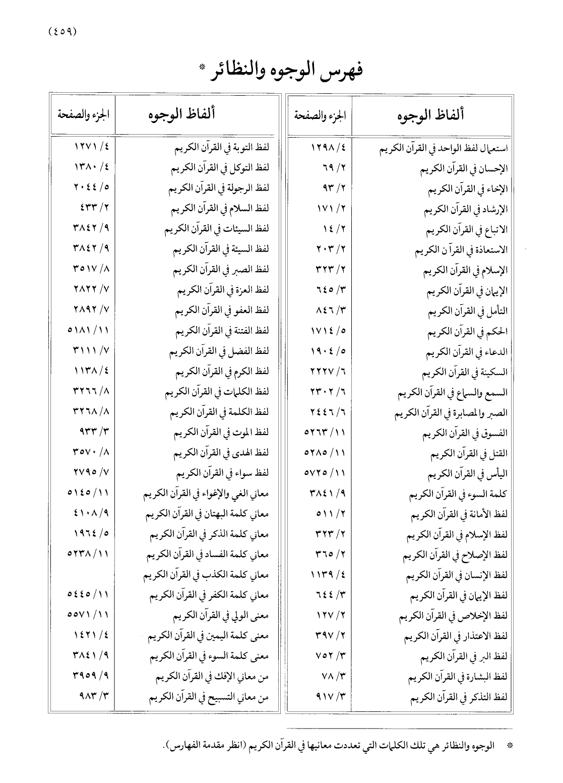 * الوجوه والنظائر هي تلك الكلمات التي تعددت معانيها في القرآن الكريم (انظر مقدمة الفهارس) .