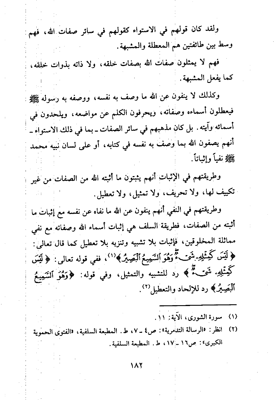 2 انظر: "الرسالة التدمرية": ص 4- 7، ط. المطبعة السلفية، "الفتوى الحموية الكبرى": ص 16- 17، ط. المطبعة السلفية.