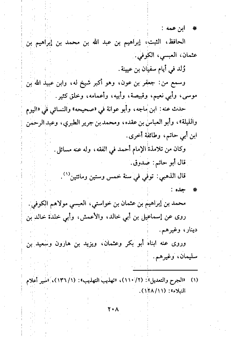 الحافظ، الثبت، إبراهيم بن عبد الله بن محمد بن إبراهيم بن عثمان، العبسي، الكوفي.