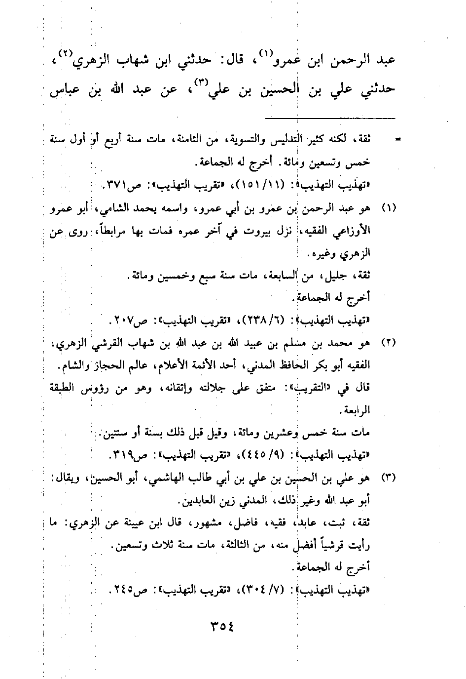 عَبْدُ الرَّحْمَنِ بْنُ عَمْرٍو1، قَالَ: حَدَّثَنِي ابْنُ شِهَابٍ الزُّهْرِيُّ2، حَدَّثَنِي عَلِيُّ بْنُ الْحُسَيْنِ بْنِ عَلِيٍّ3،، عَنْ عَبْدِ اللَّهِ بْنِ عَبَّاسٍ