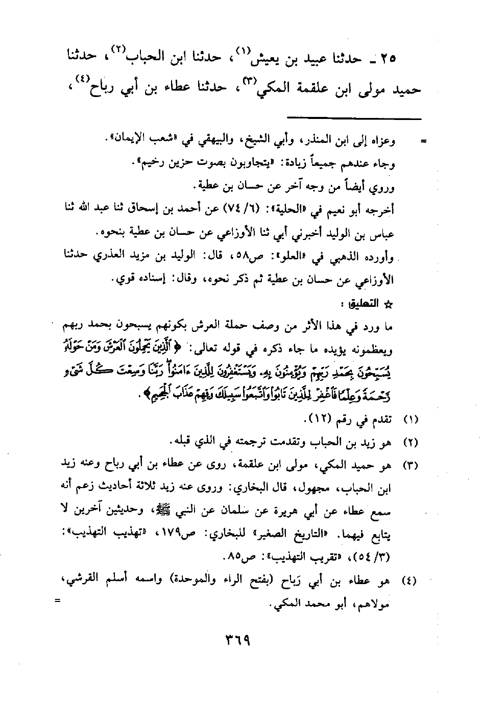 25- حَدَّثَنَا عُبَيْدُ بْنُ يَعِيشَ1، حَدَّثَنَا ابْنُ الْحُبَابِ2، حَدَّثَنَا حُمَيْدٌ مَوْلَى ابْنِ عَلْقَمَةَ الْمَكِّيُّ3، حَدَّثَنَا عَطَاءُ بْنُ أَبِي رَبَاحٍ4،