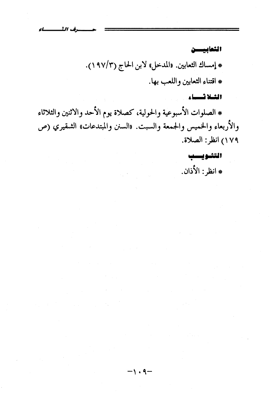 • الصلوات الأسبوعية والحولية، كصلاة يوم الأحد والاثنين والثلاثاء والأربعاء والخميس والجمعة والسبت. "السنن والمبتدعات" الشقيري (ص 179) انظر: الصلاة.