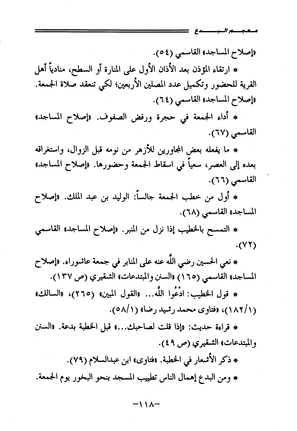 • أداء الجمعة في حجرة ورفض الصفوف. "إصلاح المساجد" القاسمي (67).