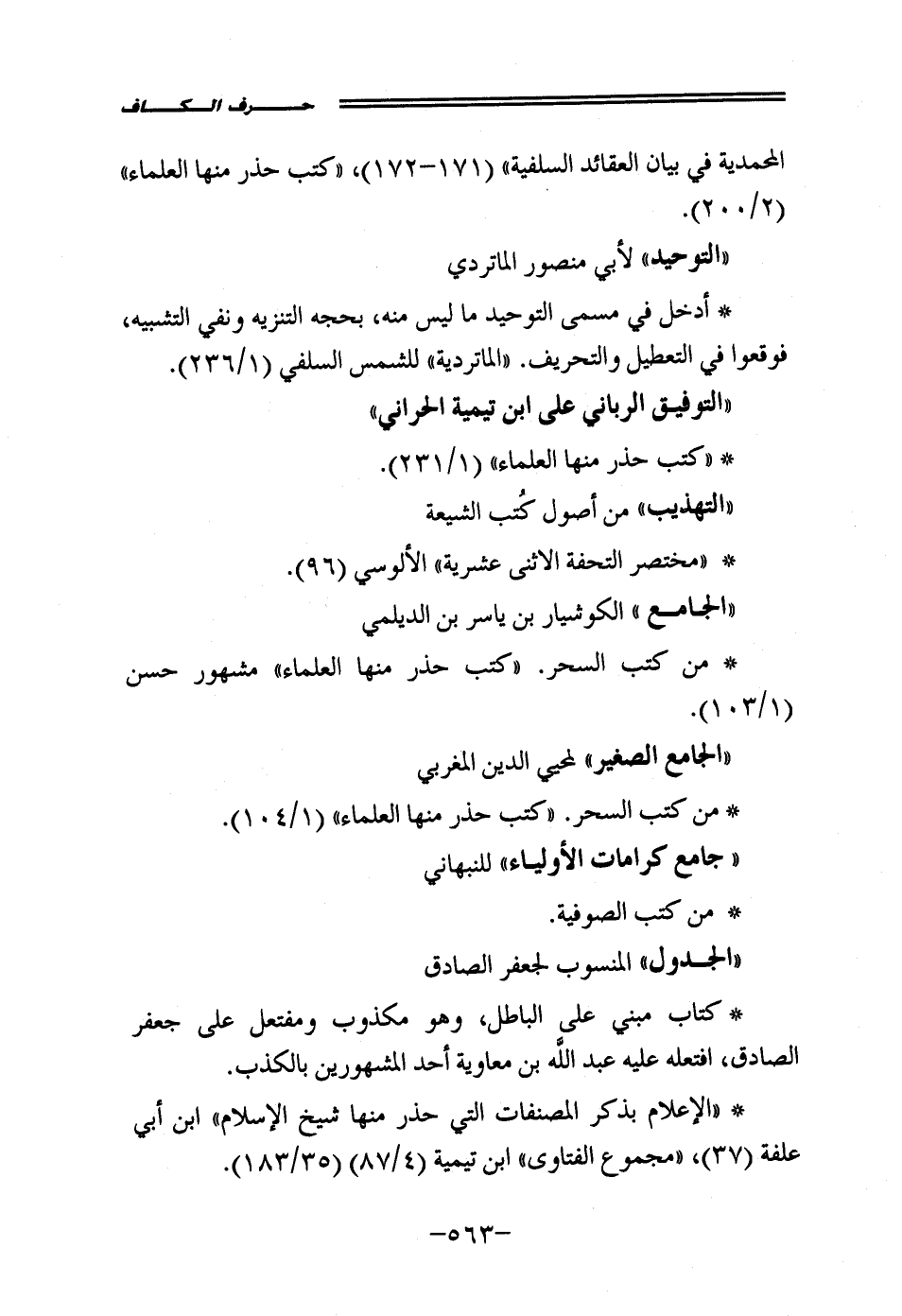 المحمدية في بيان العقائد السلفية" (171 - 172)، "كتب حذر منها العلماء" (2/ 200).