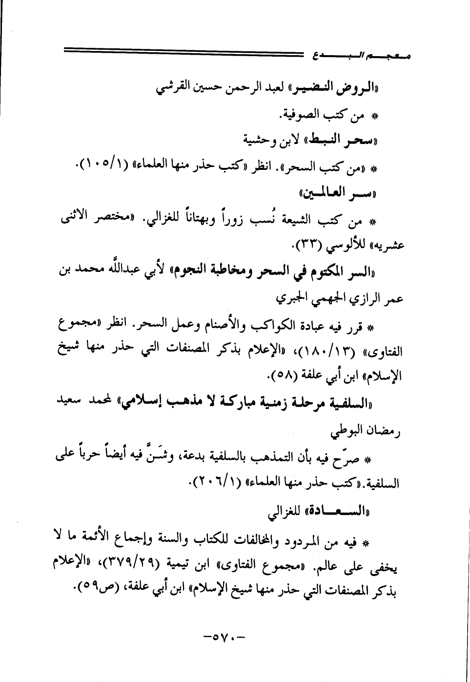 • صرّح فيه بأن التمذهب بالسلفية بدعة، وشَنَّ فيه أيضًا حربًا على السلفية. "كتب حذر منها العلماء" (1/ 206).
