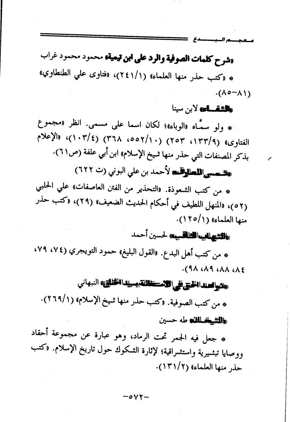 • من كتب الصوفية. "كتب حذر منها شيخ الإسلام" (1/ 269). "الشيخان" طه حسين