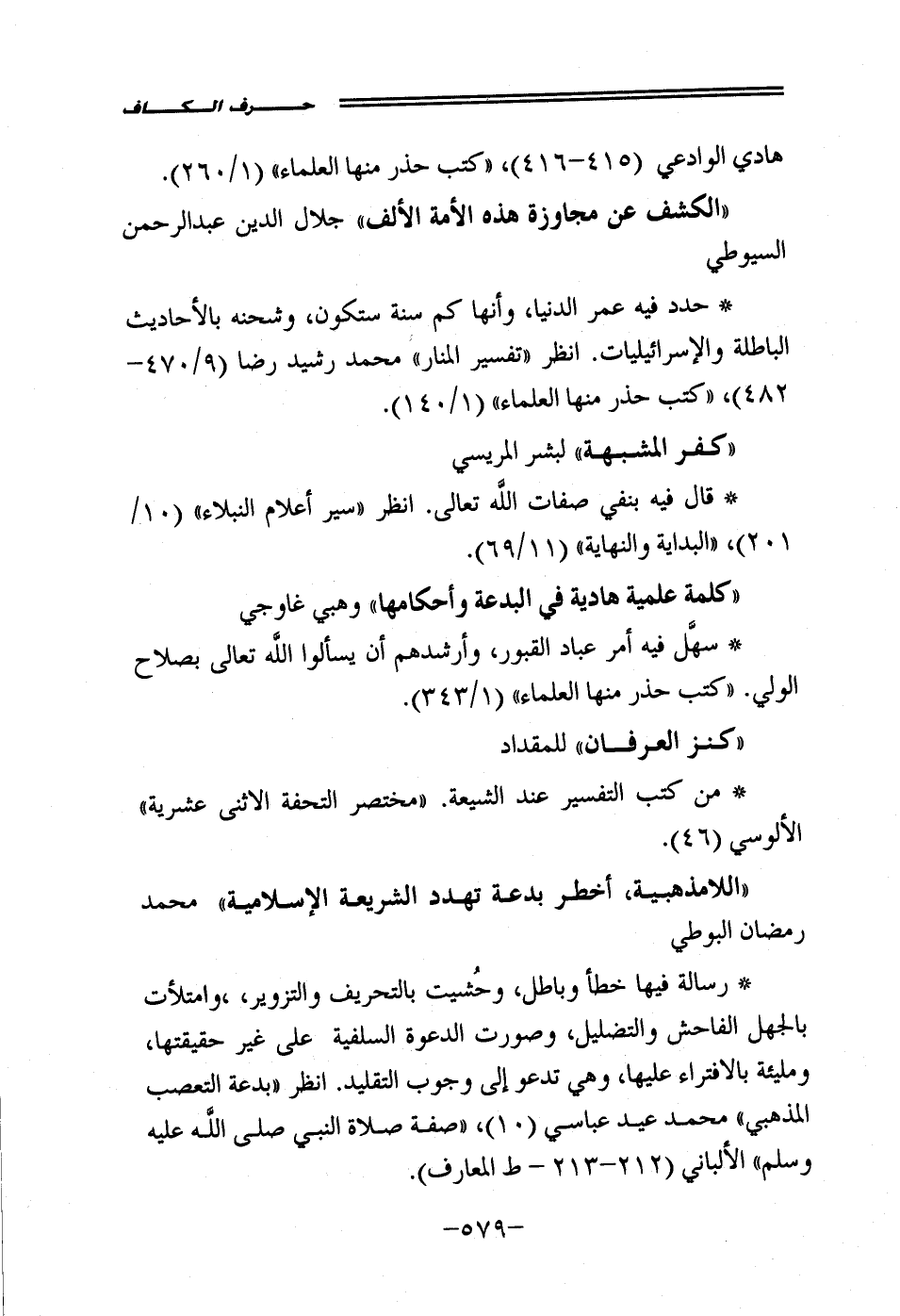 هادي الوادعي (415 - 416)، "كتب حذر منها العلماء" (1/ 260).