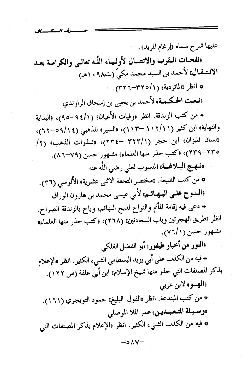• فيه من الكذب على أبي يزيد البسطامي الشيء الكثير. انظر "الإعلام بذكر المصنفات التي حذر منها شيخ الإسلام" ابن أبي علفة (ص 122).
