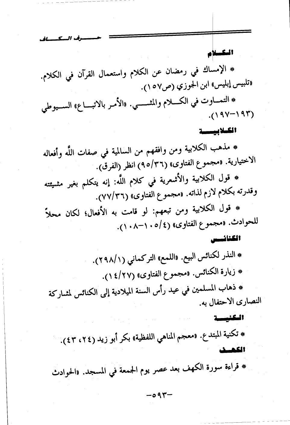 • قول الكلابية والأشعرية في كلام الله: إنه يتكلم بغير مشيئته وقدرته بكلام لازم لذاته. "مجموع الفتاوى" (36/ 77).