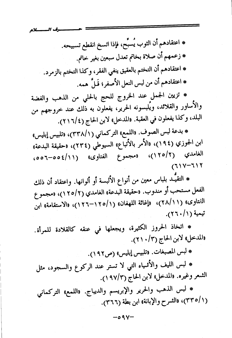 • لبس المصبغات. "تلبيس إبليس" (ص 192).
