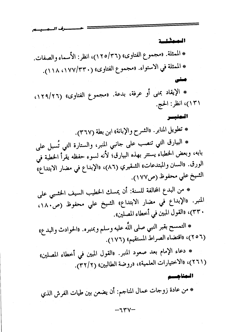 • تطويل المنابر. "الشرح والإبانة" ابن بطة (367).