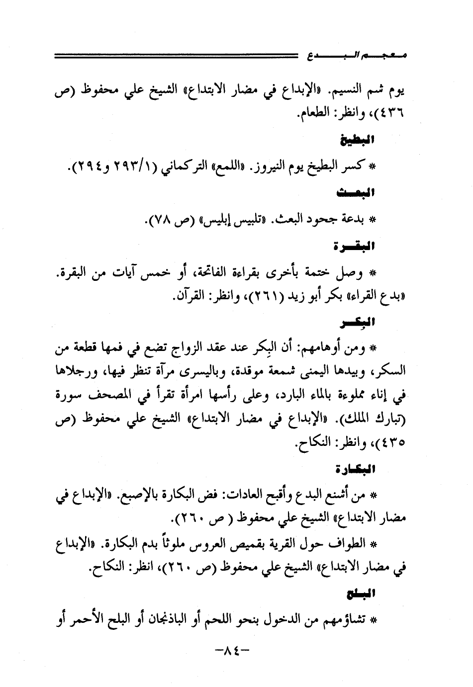 يوم شم النسيم. "الإبداع في مضار الإبتداع" الشيخ علي محفوظ (ص 436)، وانظر: الطعام.