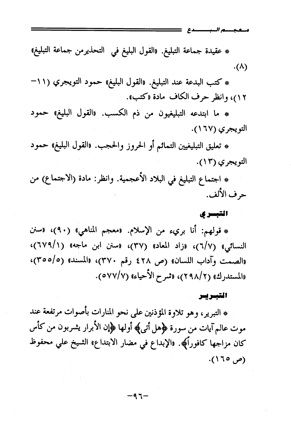 • ما ابتدعه التبليغيون من ذم الكسب. "القول البليغ" حمود التويجري (167).