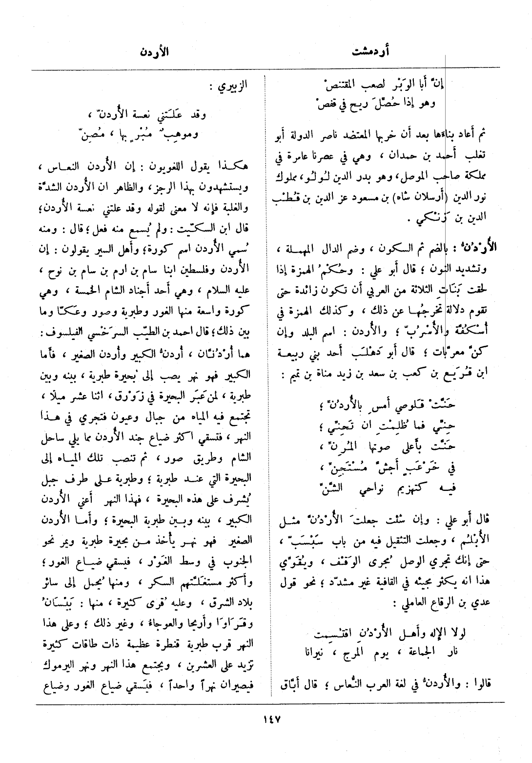 قالوا: والأردنّ في لغة العرب النّعاس، قال أبّاق الزبيري: