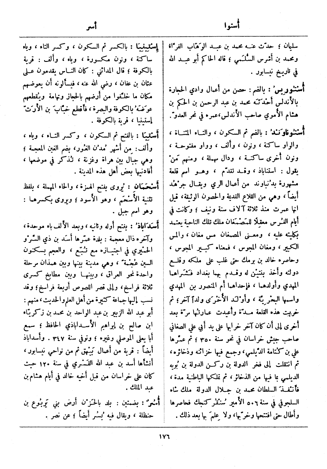بفتح أوله وثانيه، وبعد الألف باء موحدة، وآخره ذال معجمة: بلدة عمّرها أسد بن ذي السّرو الحميري في اجتيازه مع تبّع، والعجم يسكنون السين عجمة، وهي مدينة بينها وبين همذان مرحلة واحدة نحو العراق، وبينها وبين مطابخ كسرى ثلاثة فراسخ، وإلى قصر اللصوص أربعة فراسخ، وقد نسب إليها جماعة كثيرة من أهل العلم والحديث، منهم: