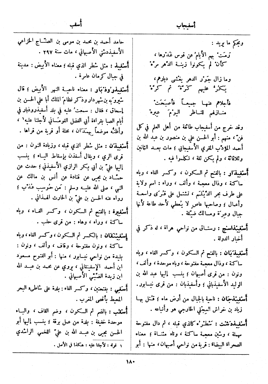 مثل شطر الذي قبله، وزيادة النون: من قرى الري، ويقال أسفذن بإسقاط الياء، ينسب إليها عليّ بن أبي بكر الرازي الأسفيذني، حدث عن حمّاد بن يحيى عن قتادة عن أنس بن مالك عن النبي، صلى الله عليه وسلم: من حوسب عذّب، رواه عنه الحسن بن عليّ بن الحارث الهمذاني.