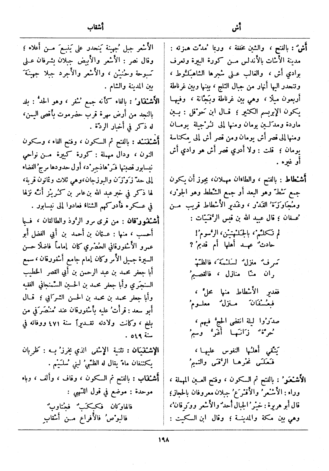 مدينة الأشات بالأندلس من كورة البيرة وتعرف بوادي أش، والغالب على شجرها الشاهبلوط، وتنحدر إليها أنهار من جبال الثلج، بينها وبين غرناطة أربعون ميلا، وهي بين غرناطة وبجّانة، وفيها يكون الإبريسم الكثير، قال ابن حوقل: بين ماردة ومدلين يومان ومنها إلى ترجيلة يومان ومنها إلى قصر أش يومان ومن قصر أش إلى مكناسة يومان، قلت: ولا أدري قصر أش هو وادي أش أو غيره.