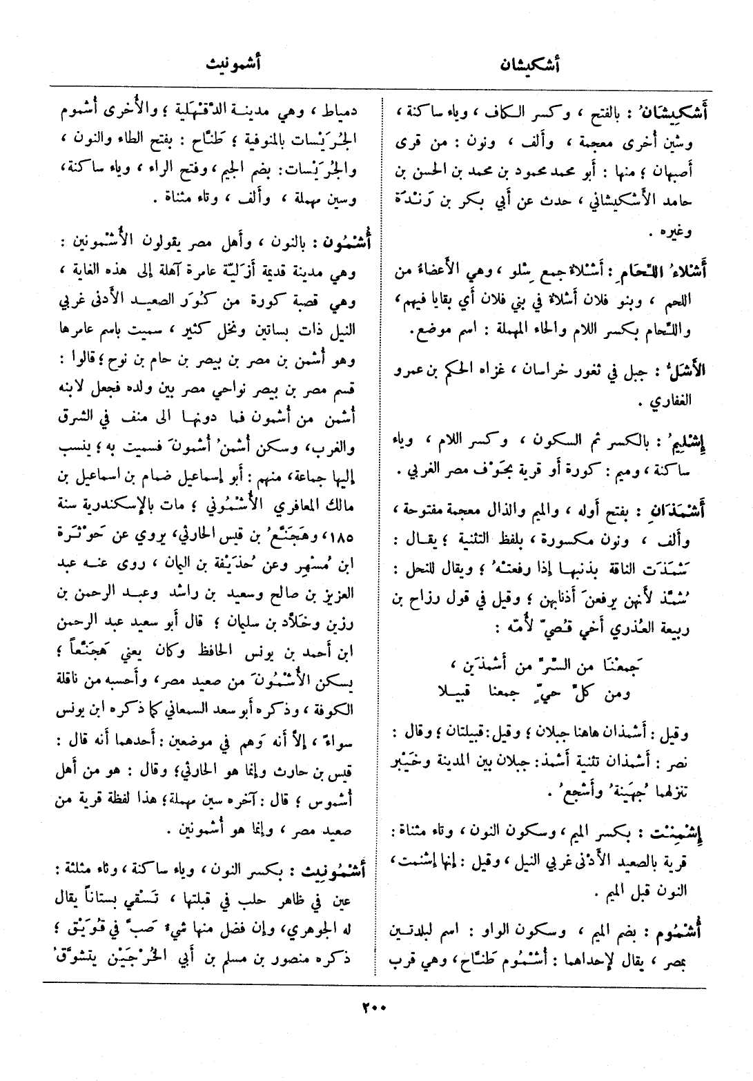 قسم مصر بن بيصر نواحي مصر بين ولده فجعل لابنه أشمن من أشمون فما دونها الى منف في الشرق والغرب، وسكن أشمن أشمون فسميت به، ينسب إليها جماعة، منهم: أبو إسماعيل ضمام بن إسماعيل بن مالك المعافري الأشموني، مات بالإسكندرية سنة 185، وهجنّع بن قيس الحارثي، يروي عن حوثرة ابن مسهر وعن حذيفة بن اليمان، روى عنه عبد العزيز بن صالح وسعيد بن راشد وعبد الرحمن بن رزين وخلّاد بن سليمان، قال أبو سعيد عبد الرحمن ابن أحمد بن يونس الحافظ وكان يعني هجنّعا، يسكن الأشمون من صعيد مصر، وأحسبه من ناقلة الكوفة، وذكره أبو سعد السمعاني كما ذكره ابن يونس سواء، إلّا أنه وهم في موضعين: أحدهما أنه قال: