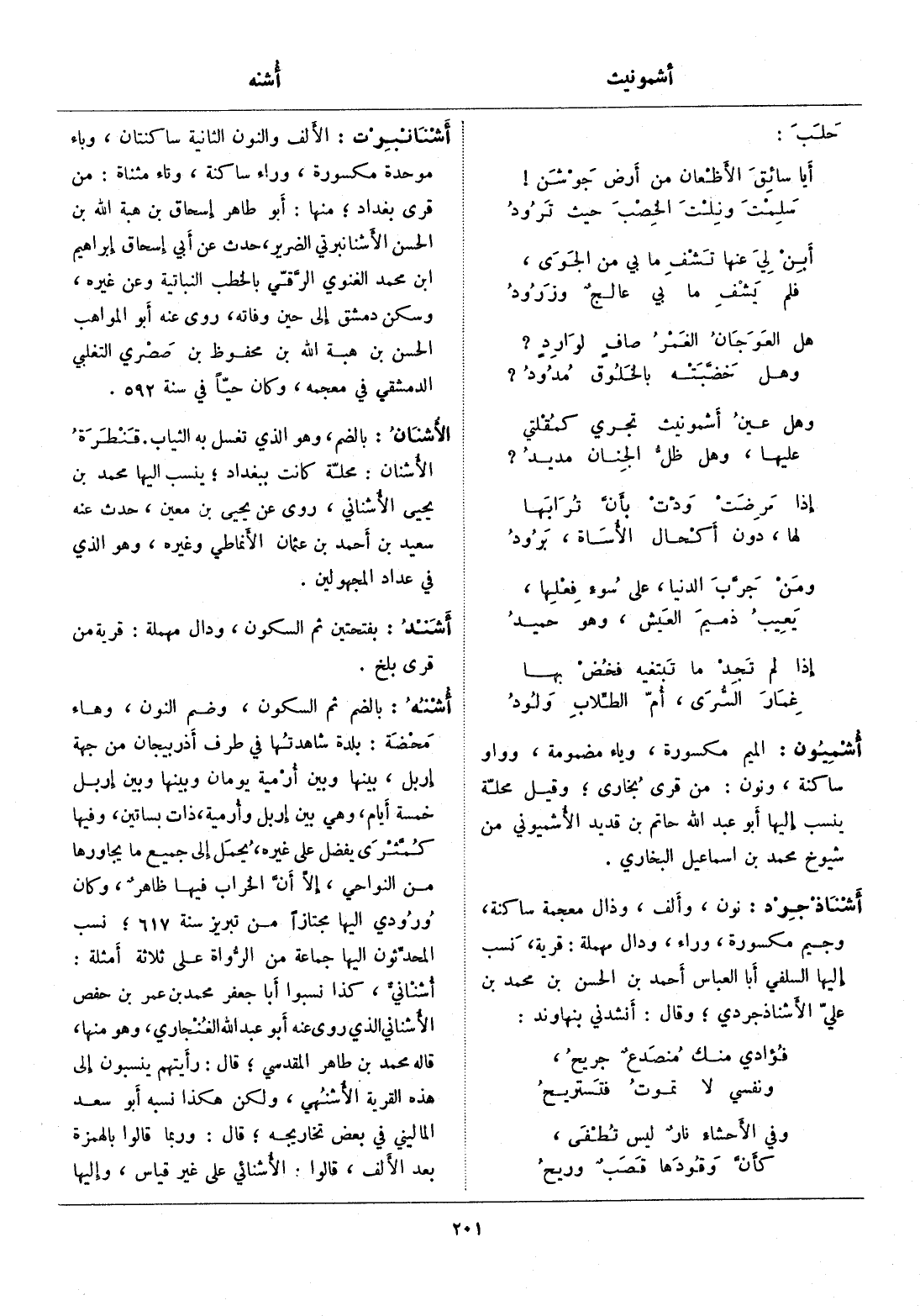 بالضم، وهو الذي تغسل به الثياب. قنطرة الأشنان: محلّة كانت ببغداد، ينسب إليها محمد بن يحيى الأشناني، روى عن يحيى بن معين، حدث عنه سعيد بن أحمد بن عثمان الأنماطي وغيره، وهو الذي في عداد المجهولين.