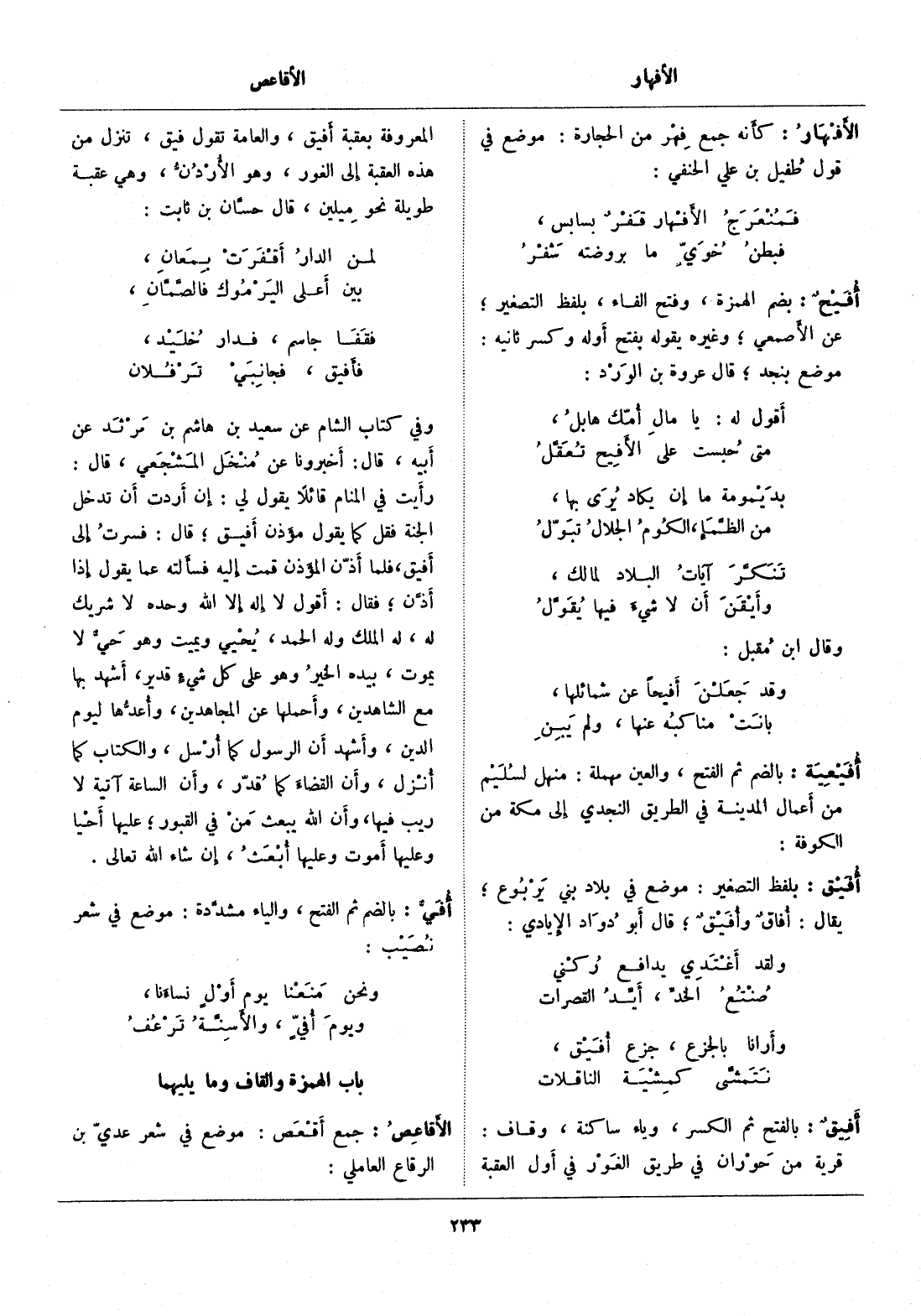 فمنعرج الأفهار قفر بسابس، ... فبطن خويّ ما بروضته شفر