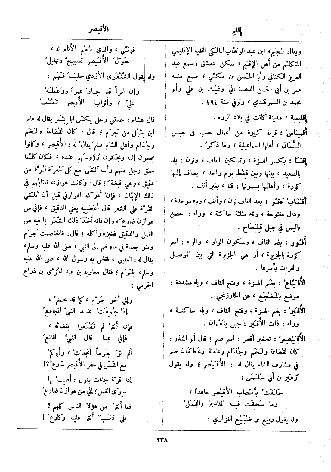 كان لقضاعة ولخم وجذام وعاملة وغطفان صنم في مشارف الشام يقال له: الأقيصر، وله يقول زهير بن أبي سلمى: