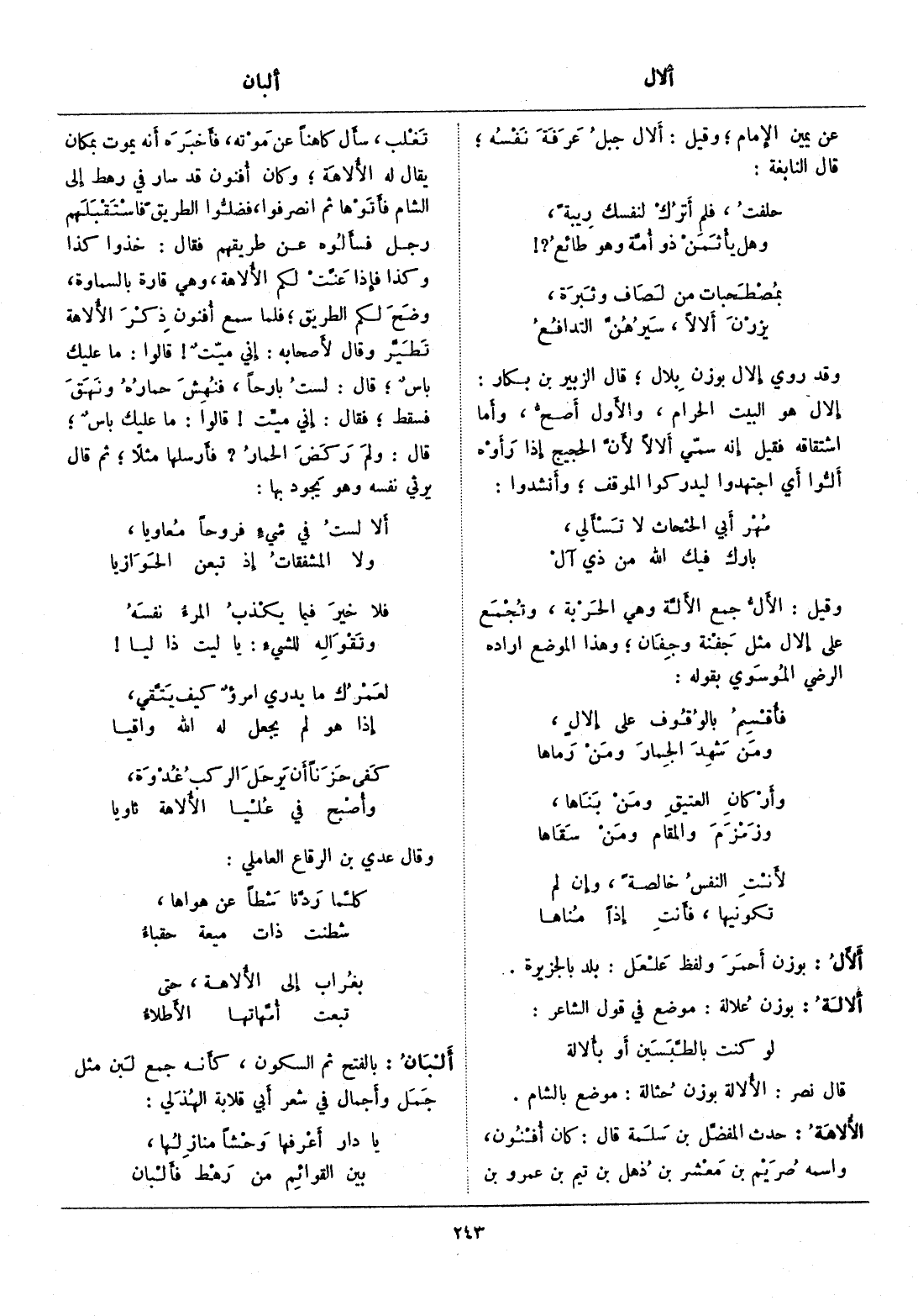 وقيل: الألّ جمع الألّة وهي الحربة، وتجمع على إلال مثل جفنة وجفان، وهذا الموضع اراده الرضي الموسوي بقوله: