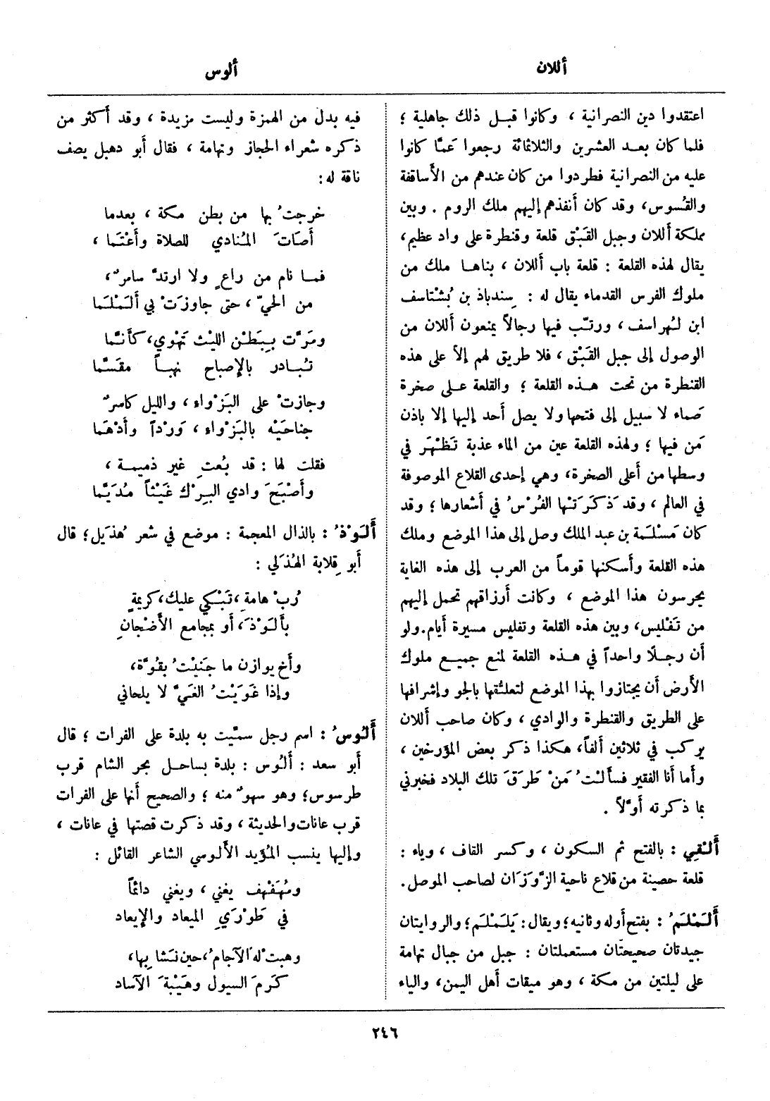 اعتقدوا دين النصرانية، وكانوا قبل ذلك جاهلية، فلما كان بعد العشرين والثلاثمائة رجعوا عمّا كانوا عليه من النصرانية فطردوا من كان عندهم من الأساقفة والقسوس، وقد كان أنفذهم إليهم ملك الروم. وبين مملكة أللان وجبل القبق قلعة وقنطرة على واد عظيم، يقال لهذه القلعة: قلعة باب أللان، بناها ملك من ملوك الفرس القدماء يقال له: سندباذ بن بشتاسف ابن لهراسف، ورتّب فيها رجالا يمنعون أللان من الوصول إلى جبل القبق، فلا طريق لهم إلّا على هذه القنطرة من تحت هذه القلعة، والقلعة على صخرة صماء لا سبيل إلى فتحها ولا يصل أحد إليها إلا باذن من فيها، ولهذه القلعة عين من الماء عذبة تظهر في وسطها من أعلى الصخرة، وهي إحدى القلاع الموصوفة في العالم، وقد ذكرتها الفرس في أشعارها، وقد كان مسلمة بن عبد الملك وصل إلى هذا الموضع وملك هذه القلعة وأسكنها قوما من العرب إلى هذه الغاية يحرسون هذا الموضع، وكانت أرزاقهم تحمل إليهم من تفليس، وبين هذه القلعة وتفليس مسيرة أيام. ولو أن رجلا واحدا في هذه القلعة لمنع جميع ملوك الأرض أن يجتازوا بهذا الموضع لتعلّقها بالجو وإشرافها على الطريق والقنطرة والوادي، وكان صاحب أللان يركب في ثلاثين ألفا، هكذا ذكر بعض المؤرخين، وأما أنا الفقير فسألت من طرق تلك البلاد فخبرني بما ذكرته أوّلا.