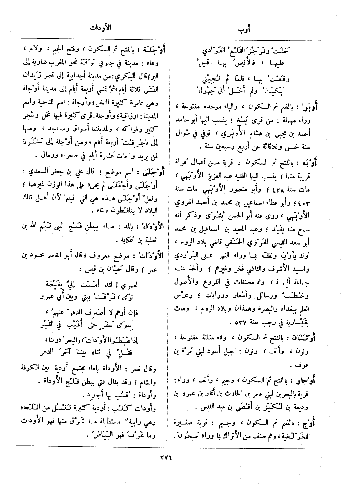 بالفتح ثم السكون: قرية من أعمال هراة قريبة منها، ينسب إليها الفقيه عبد العزيز الأوبهي، مات سنة 428، وأبو منصور الأوبهي مات سنة 403، وأبو عطاء إسماعيل بن محمد بن أحمد الهروي الأوبهي، روى عنه أبو الحسن بشرى وذكر أنه سمع منه بفيد، وعبد المجيد بن إسماعيل بن محمد أبو سعد القيسي الهروي الحنفي قاضي بلاد الروم، ولد بأوبه وتفقّه بما وراء النهر على البرودي والسيد الأشرف والقاضي فخر وغيرهم، وأخذ عنه جماعة أئمة، وله مصنفات في الفروع والأصول وخطب ورسائل وأشعار وروايات، ودرّس العلم ببغداد والبصرة وهمذان وبلاد الروم، ومات بقيسارية في رجب سنة 537.