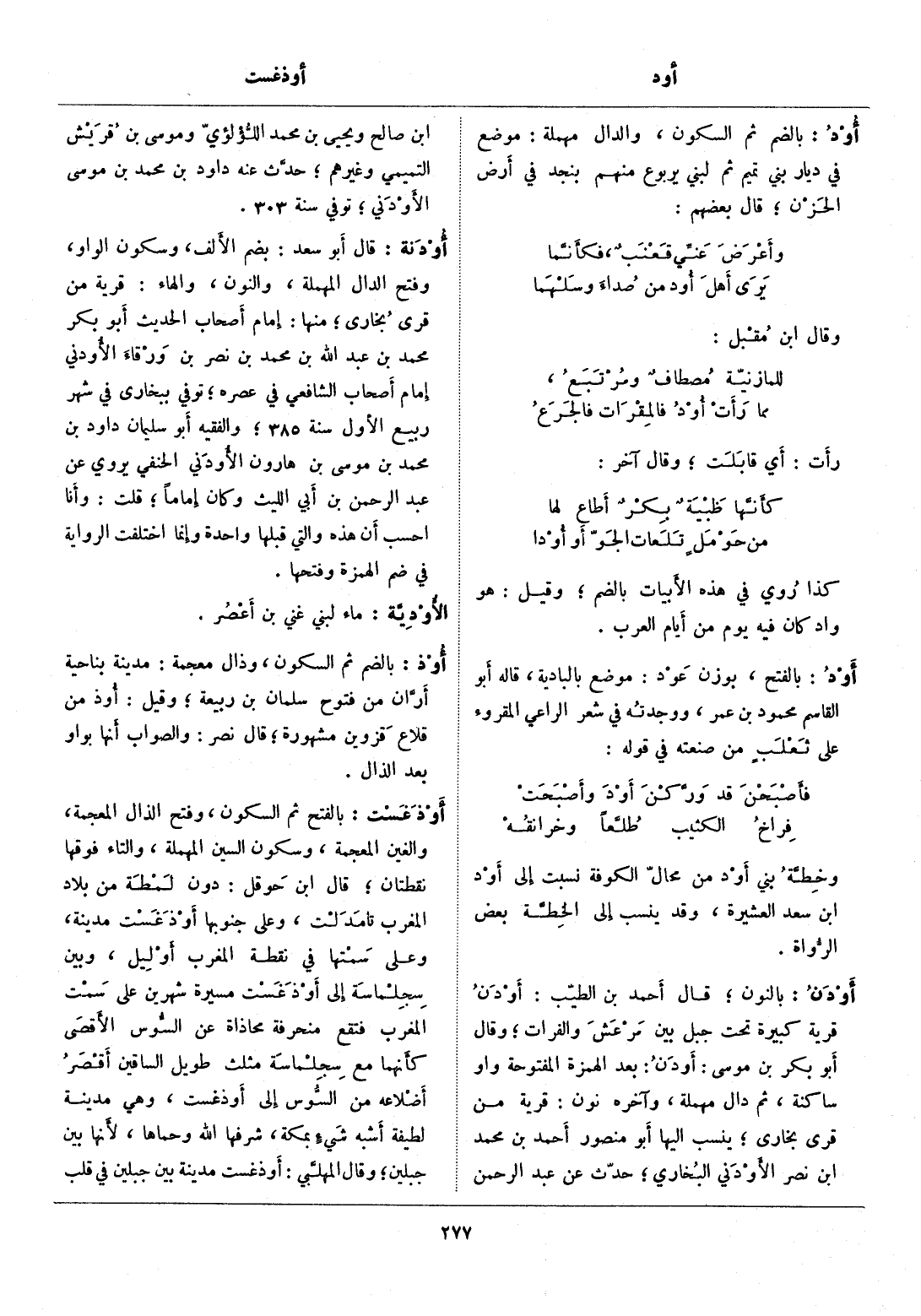 بالضم ثم السكون، وذال معجمة: مدينة بناحية أرّان من فتوح سلمان بن ربيعة، وقيل: أوذ من قلاع قزوين مشهورة، قال نصر: والصواب أنها بواو بعد الذال.