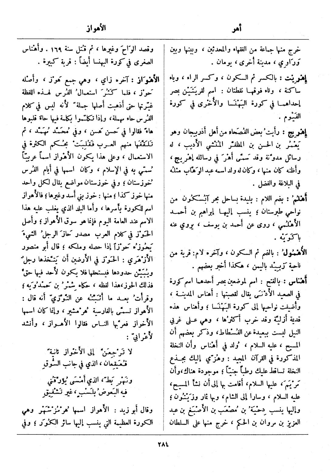 الأهواز تسمّى بالفارسية هرمشير، وإنما كان اسمها الأخواز فعرّبها الناس فقالوا الأهواز، وأنشد لأعرابيّ:
