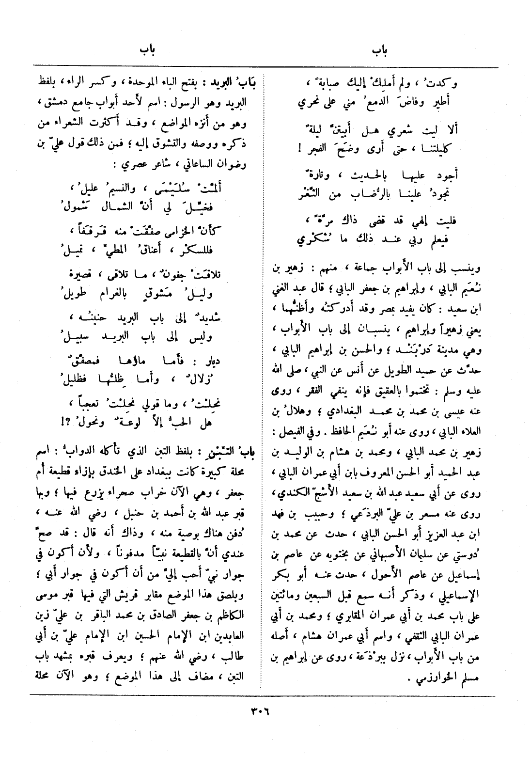 بفتح الباء الموحدة، وكسر الراء، بلفظ البريد وهو الرسول: اسم لأحد أبواب جامع دمشق، وهو من أنزه المواضع، وقد أكثرت الشعراء من ذكره ووصفه والتشوق إليه، فمن ذلك قول عليّ بن رضوان الساعاتي، شاعر عصري: