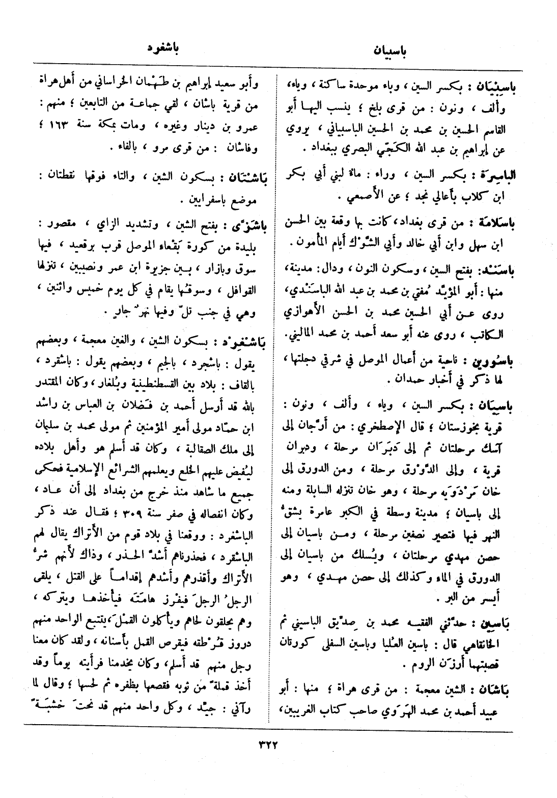 الشين معجمة: من قرى هراة، منها: أبو عبيد أحمد بن محمد الهروي صاحب كتاب الغريبين، وأبو سعيد إبراهيم بن طهمان الخراساني من أهل هراة من قرية باشان، لقي جماعة من التابعين، منهم: