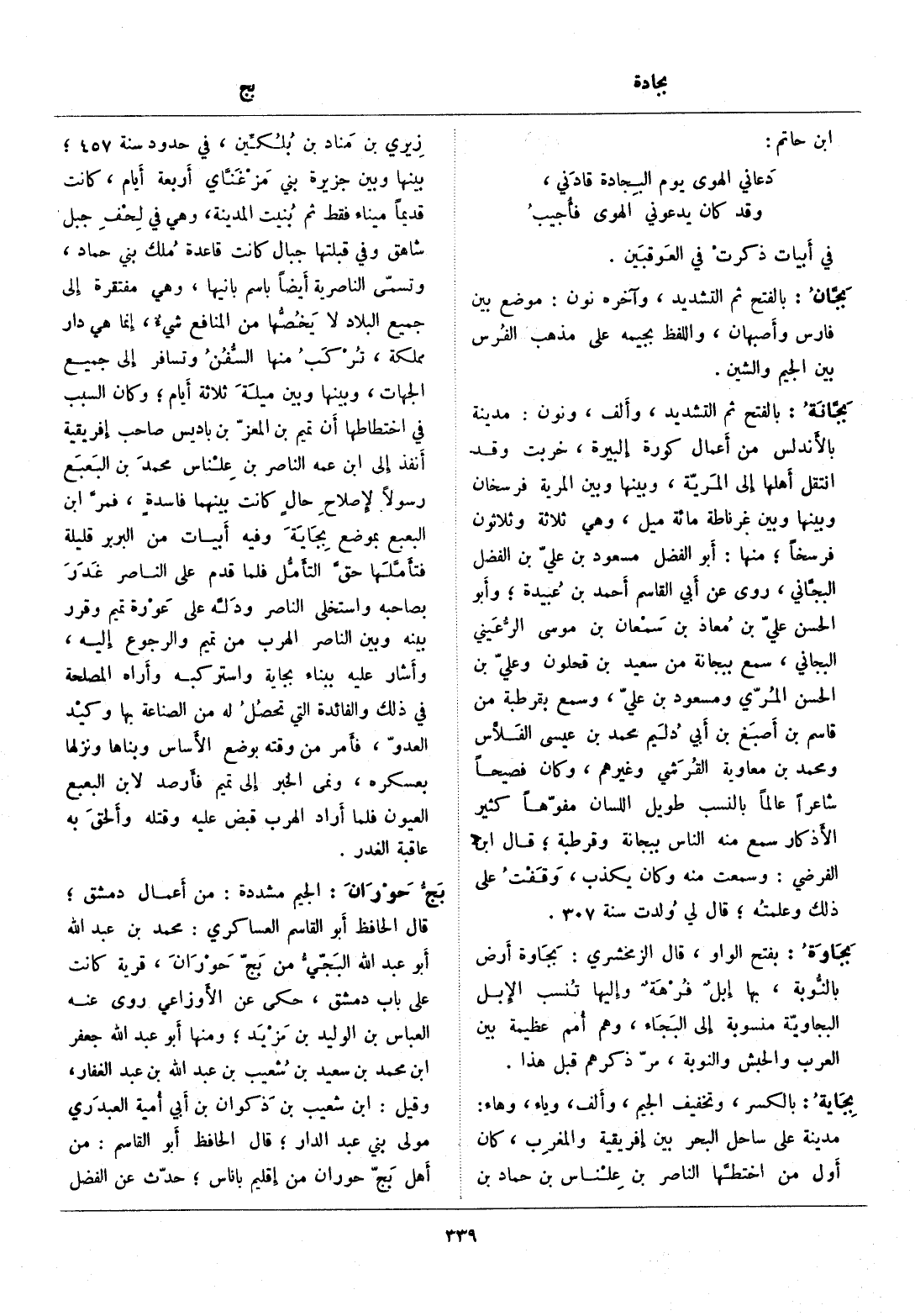 لجيم مشددة: من أعمال دمشق، قال الحافظ أبو القاسم العساكري: محمد بن عبد الله أبو عبد الله البجّيّ من بجّ حوران، قرية كانت على باب دمشق، حكى عن الأوزاعي روى عنه العباس بن الوليد بن مزيد، ومنها أبو عبد الله جعفر ابن محمد بن سعيد بن شعيب بن عبد الله بن عبد الغفار، وقيل: ابن شعيب بن ذكوان بن أبي أمية العبدري مولى بني عبد الدار، قال الحافظ أبو القاسم: من أهل بجّ حوران من إقليم بأناس، حدّث عن الفضل