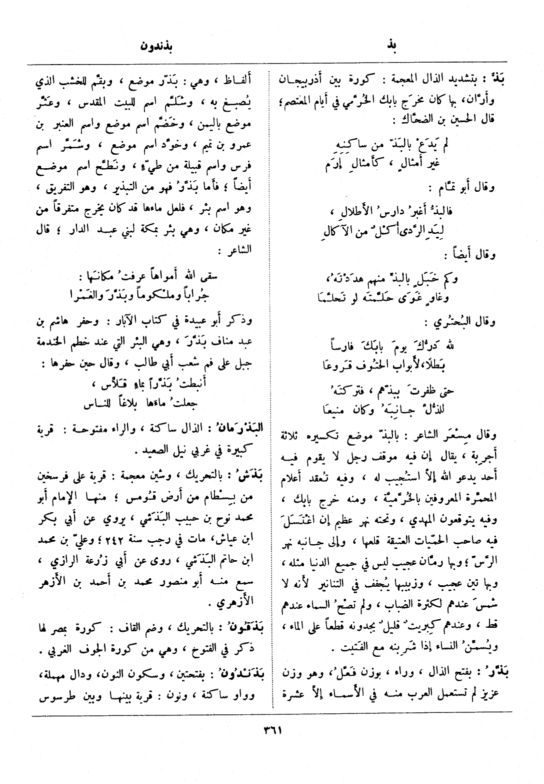 بالتحريك، وشين معجمة: قرية على فرسخين من بسطام من أرض قومس، منها الإمام أبو محمد نوح بن حبيب البذشي، يروي عن أبي بكر ابن عياش، مات في رجب سنة 242، وعليّ بن محمد ابن حاتم البذشي، روى عن أبي زرعة الرازي، سمع منه أبو منصور محمد بن أحمد بن الأزهر الأزهري.