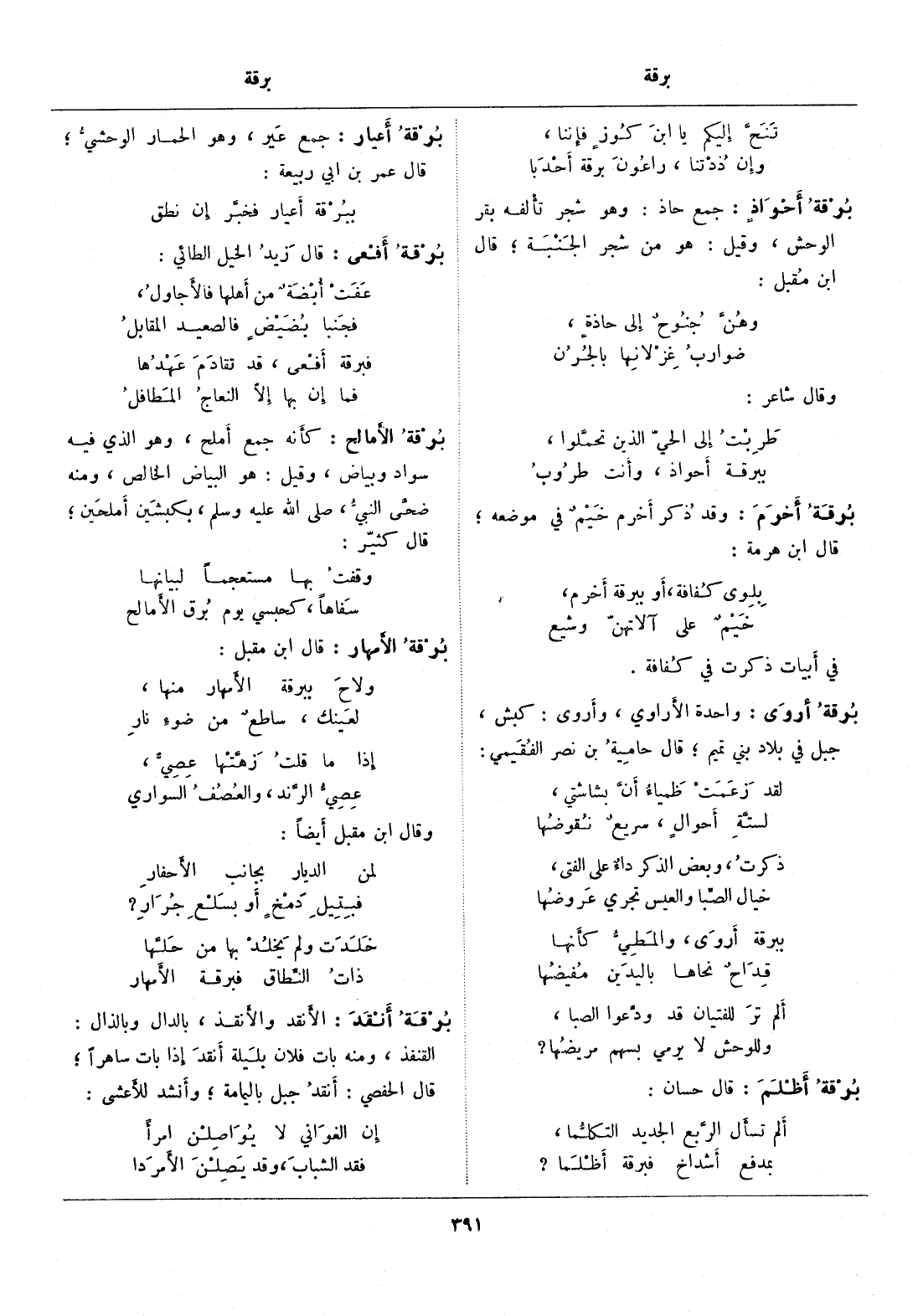 عفت أبضة من أهلها فالأجاول، ... فجنبا بضيض فالصعيد المقابل